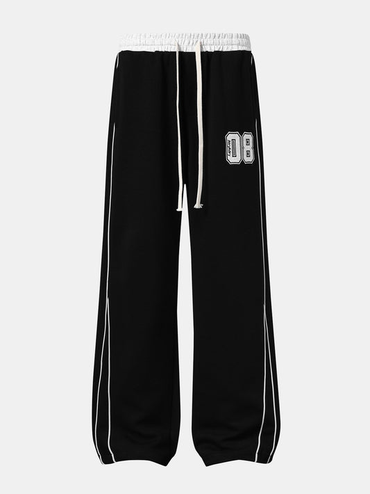 Number Print Wide-Leg Baggy Sweatpants