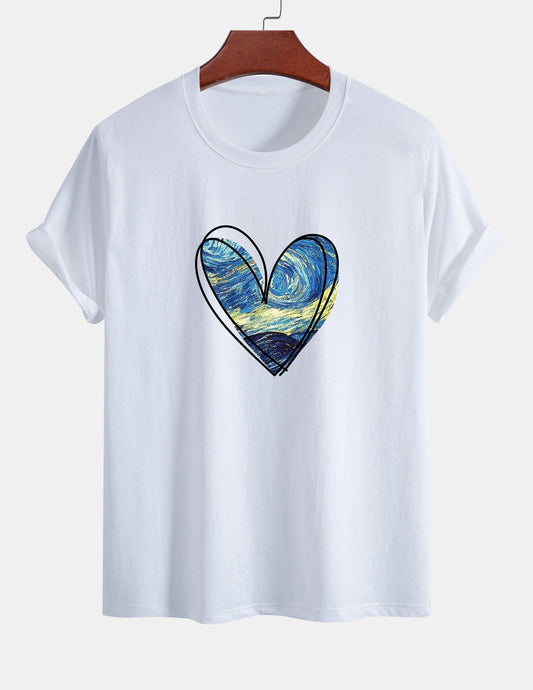 Regular Fit Starry Sky Heart Print Cotton T-Shirt