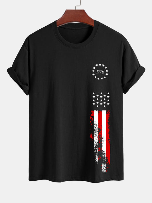 Regular Fit 1776 American Flag Print Cotton T-Shirt