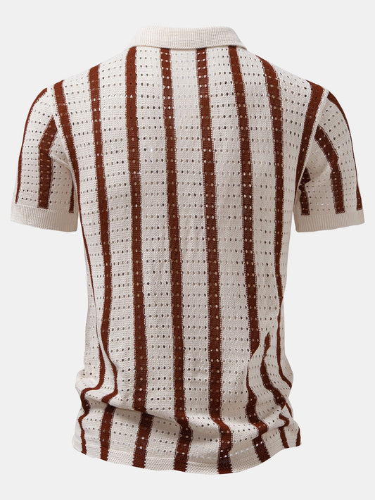 Stripe Eyelet Knitted Shirt