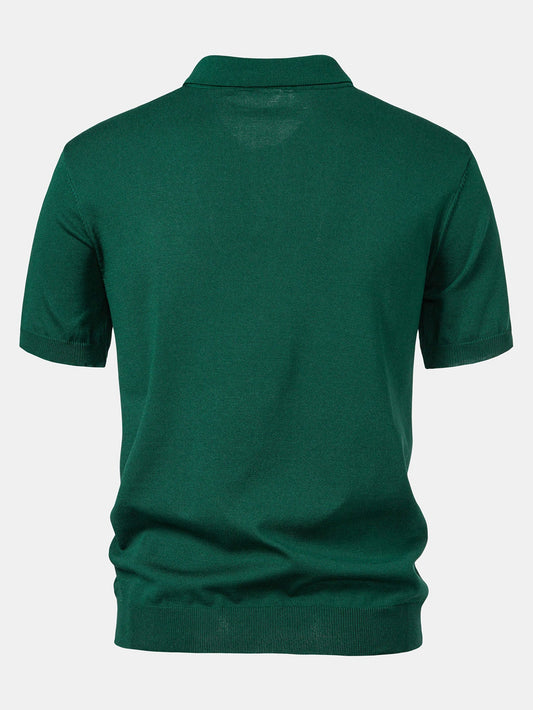 Contrast Trim Zipper Knit Polo Shirt