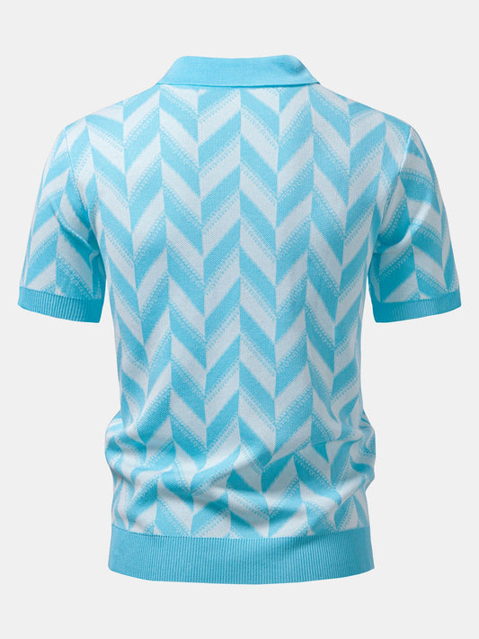 Wave Jacquard Zip Up Knitted Polo Shirt