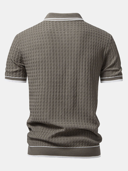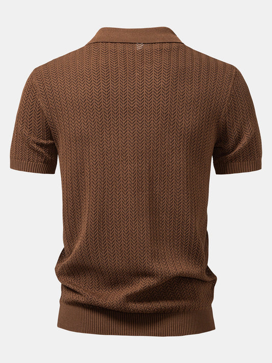 Pineapple Texture Knitted Polo Shirt