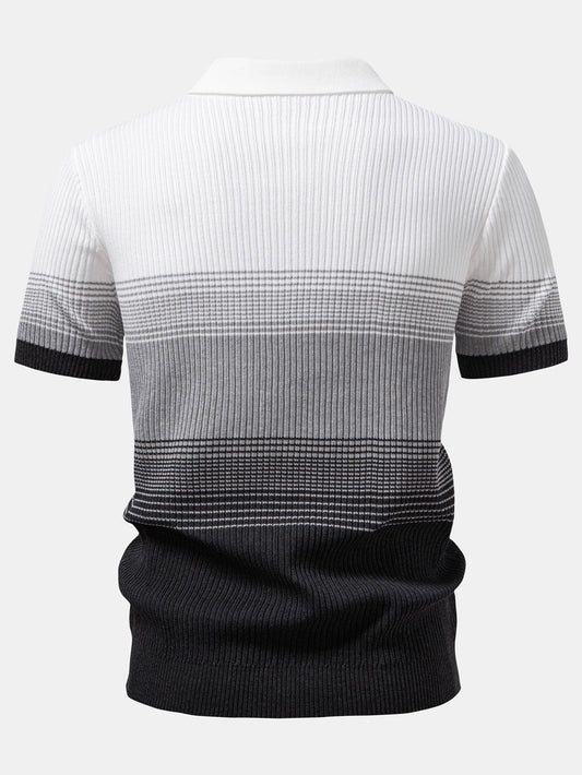 Striped Gradient Knitted Polo Shirt