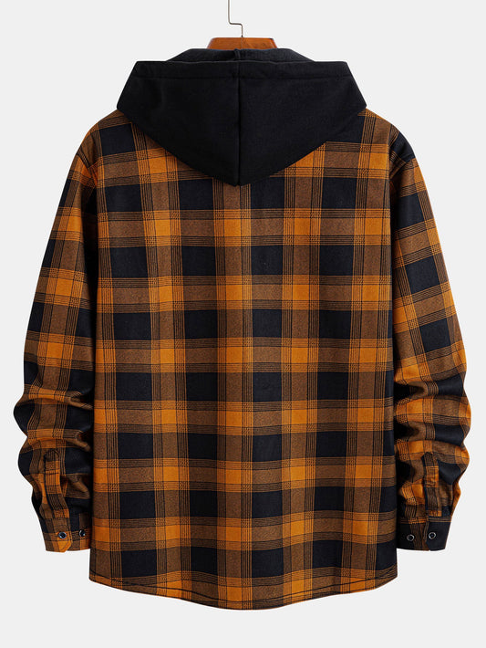 Flannel Fleece Lined Hooded Shirt With Pockets