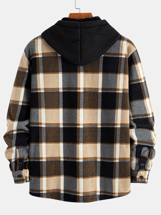 Flannel Fleece Lined Zip Up Hooded Shirt