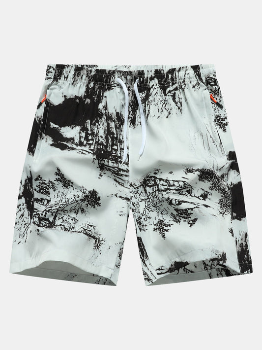 Ink Print Zipper Pocket Shorts