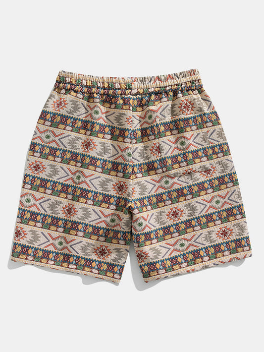3 Pieces Diamond Geometric Jacquard Drawstring Shorts