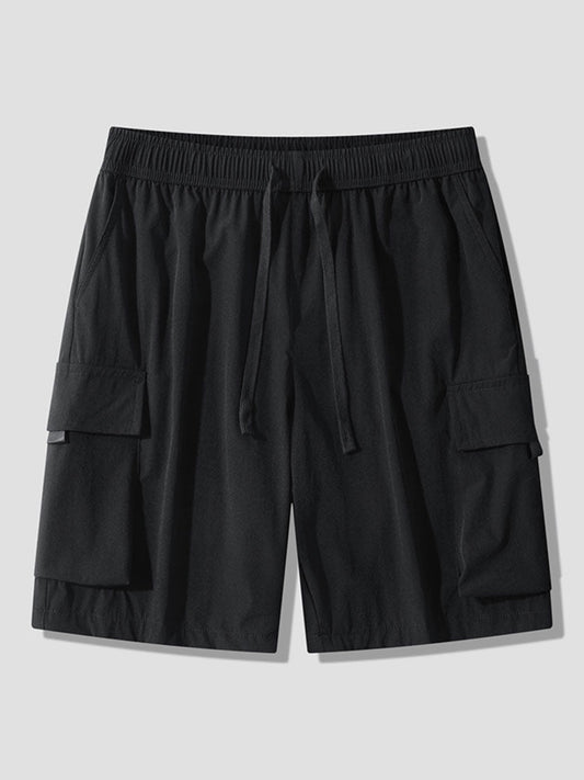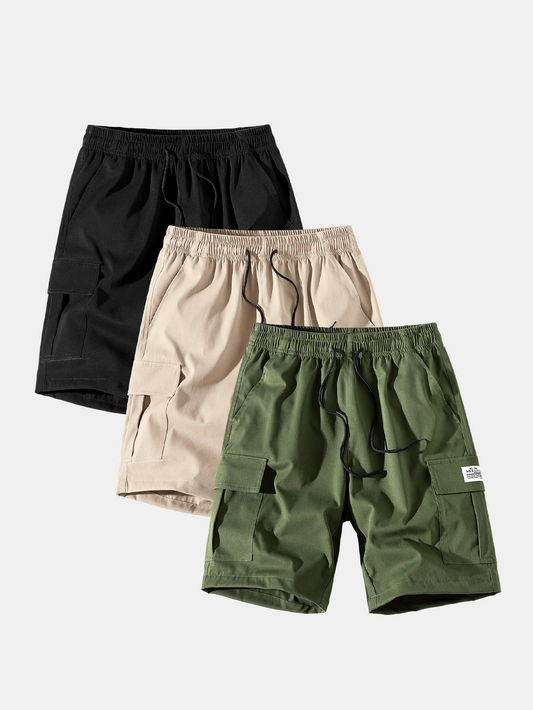 3 Pieces Solid Color Cargo Drawstring Shorts