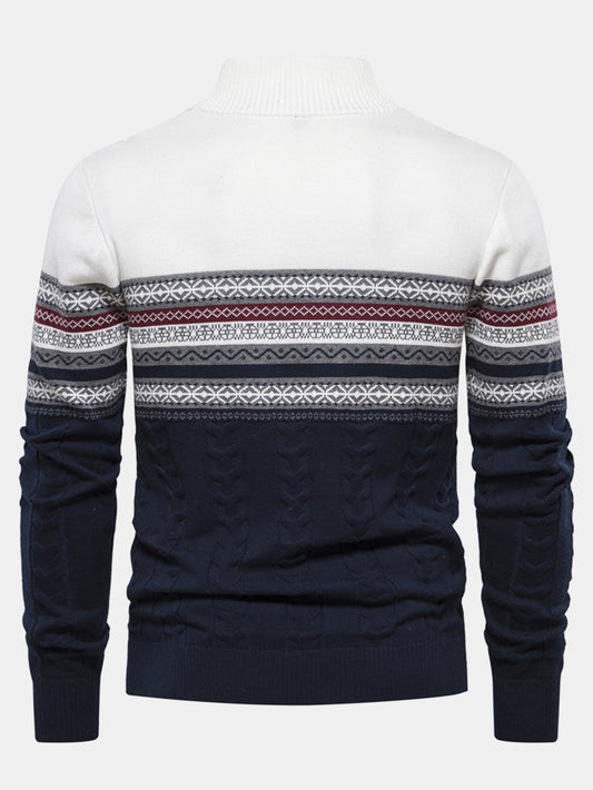 Contrast Geometric Jacquard Quarter-Zip Sweater