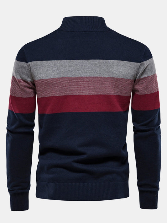 Contrast Stripe Quarter Zip Sweater