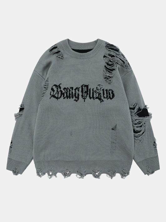 Slogan Distressed Crew Neck Sweater