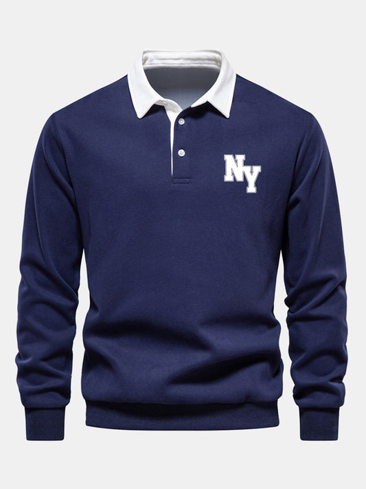 Los Angeles Print Contrast Polo Collar Sweatshirt