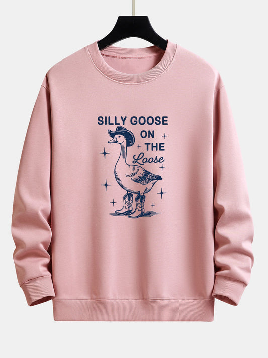 Silly Cowboy Goose Print Relax Fit Sweatshirt