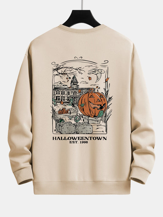 Halloween Pumpkin Town Print Relax Fit Sweatshirt