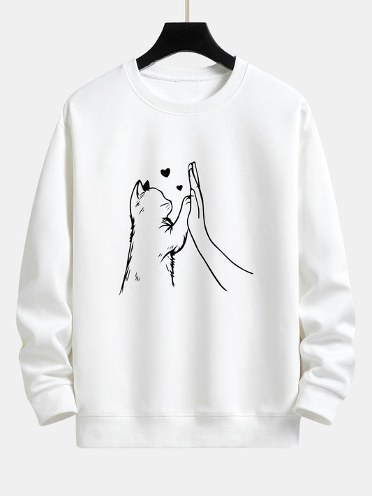 Cat High-Five Print Relax Fit Sweatshirt