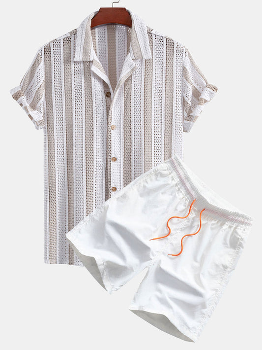 Striped Mesh Cuban Shirt & Swim Shorts