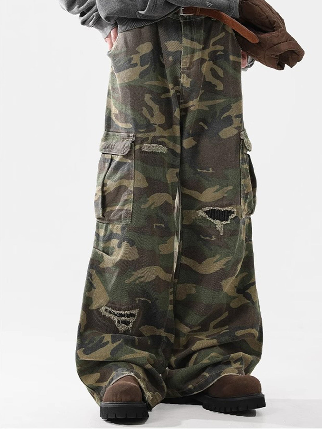Baggy Fit Camo Ripped Wide Leg Pants