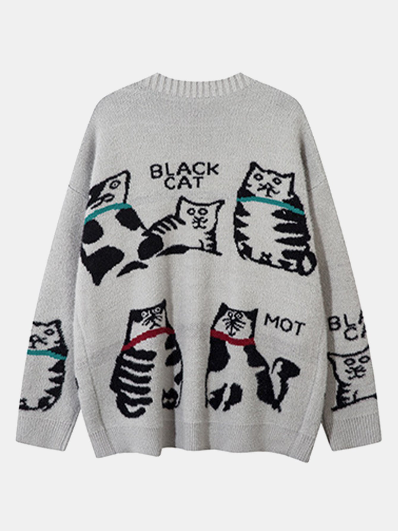 Crafted from soft knit fabric, it features an adorable black cat design that adds a fun, eye-catching twist to a cozy classic. The button-up front and relaxed fit make it versatile for layering, perfect for casual wear or adding a quirky edge to your street style.