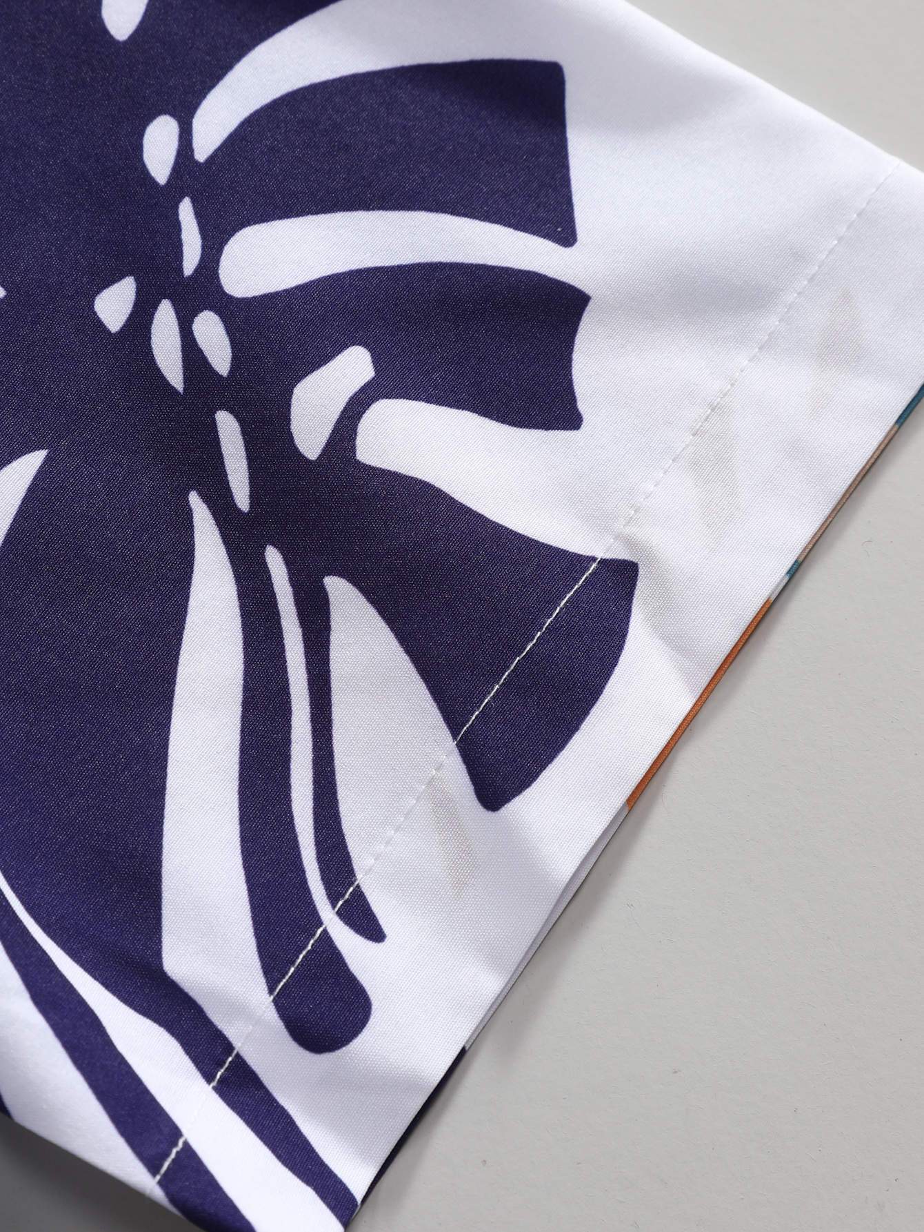 Colorful Leaf Print Button Up Shirt & Swim Shorts