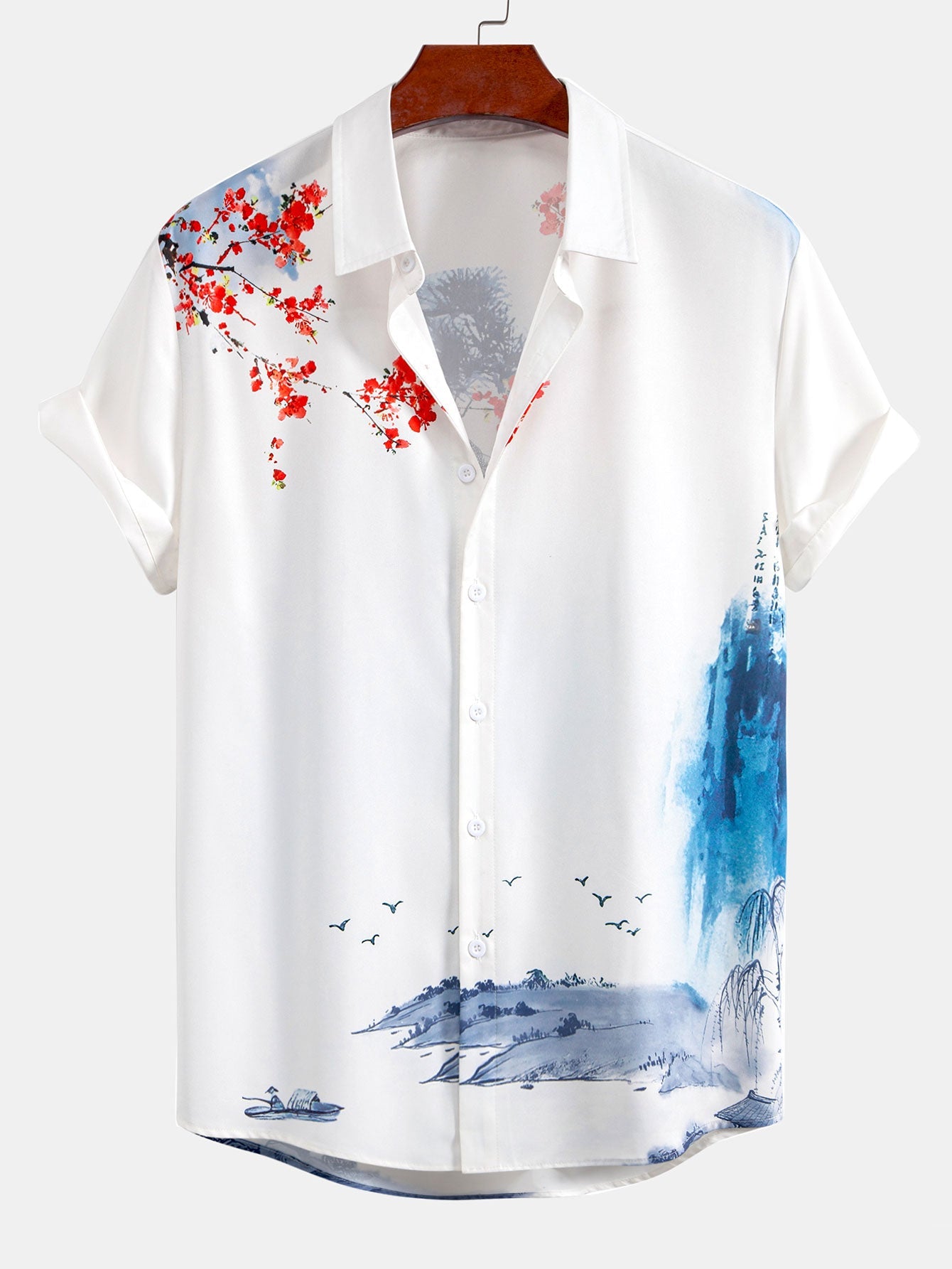 Embrace artistic elegance with this oriental ink painting button-up shirt. Featuring a unique design inspired by traditional Eastern ink paintings, this shirt blends cultural charm with modern fashion. The lightweight, breathable fabric ensures all-day comfort, while the classic button-up style offers versatility for both casual and semi-formal occasions.
