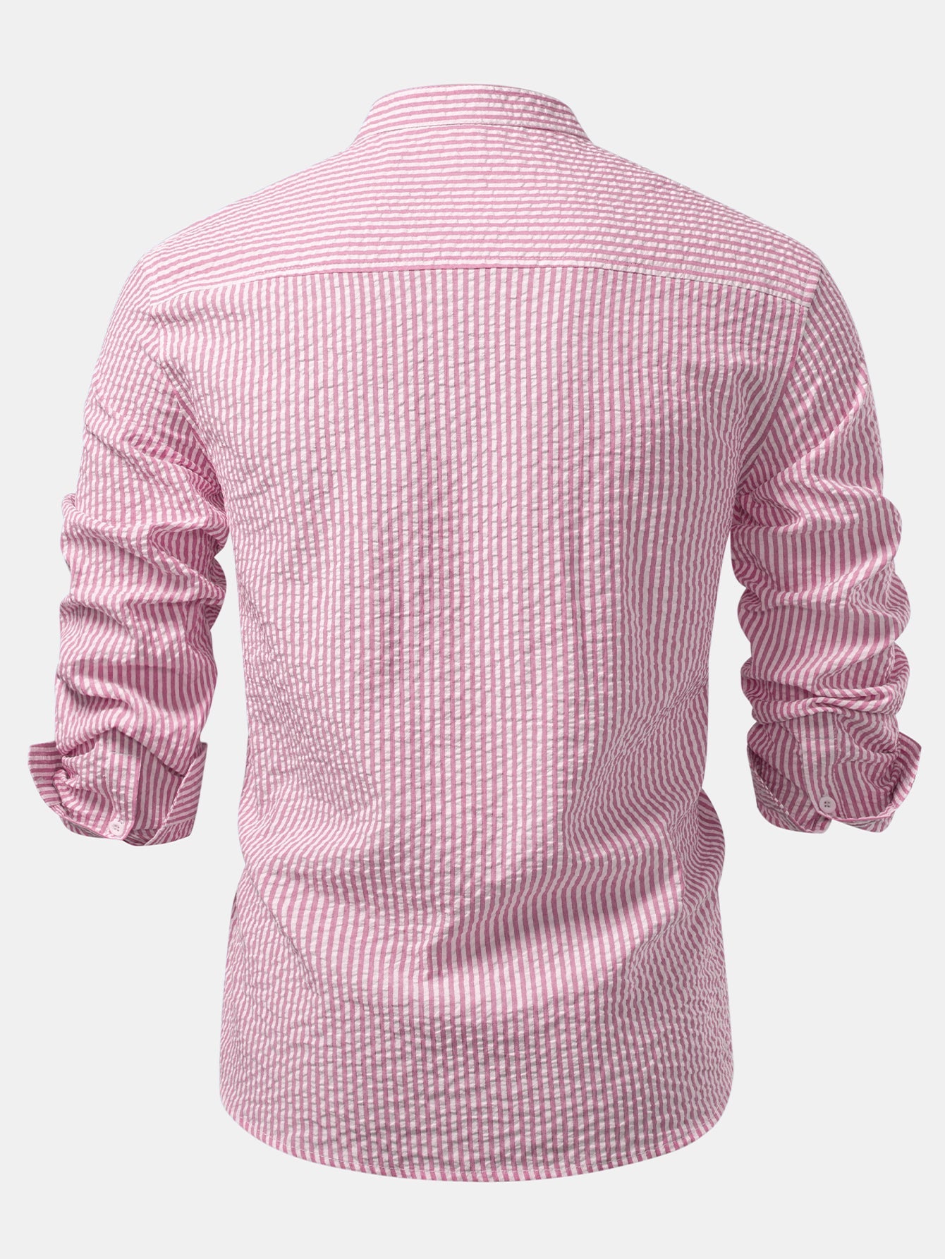 Seersucker Striped Stand Collar Shirt