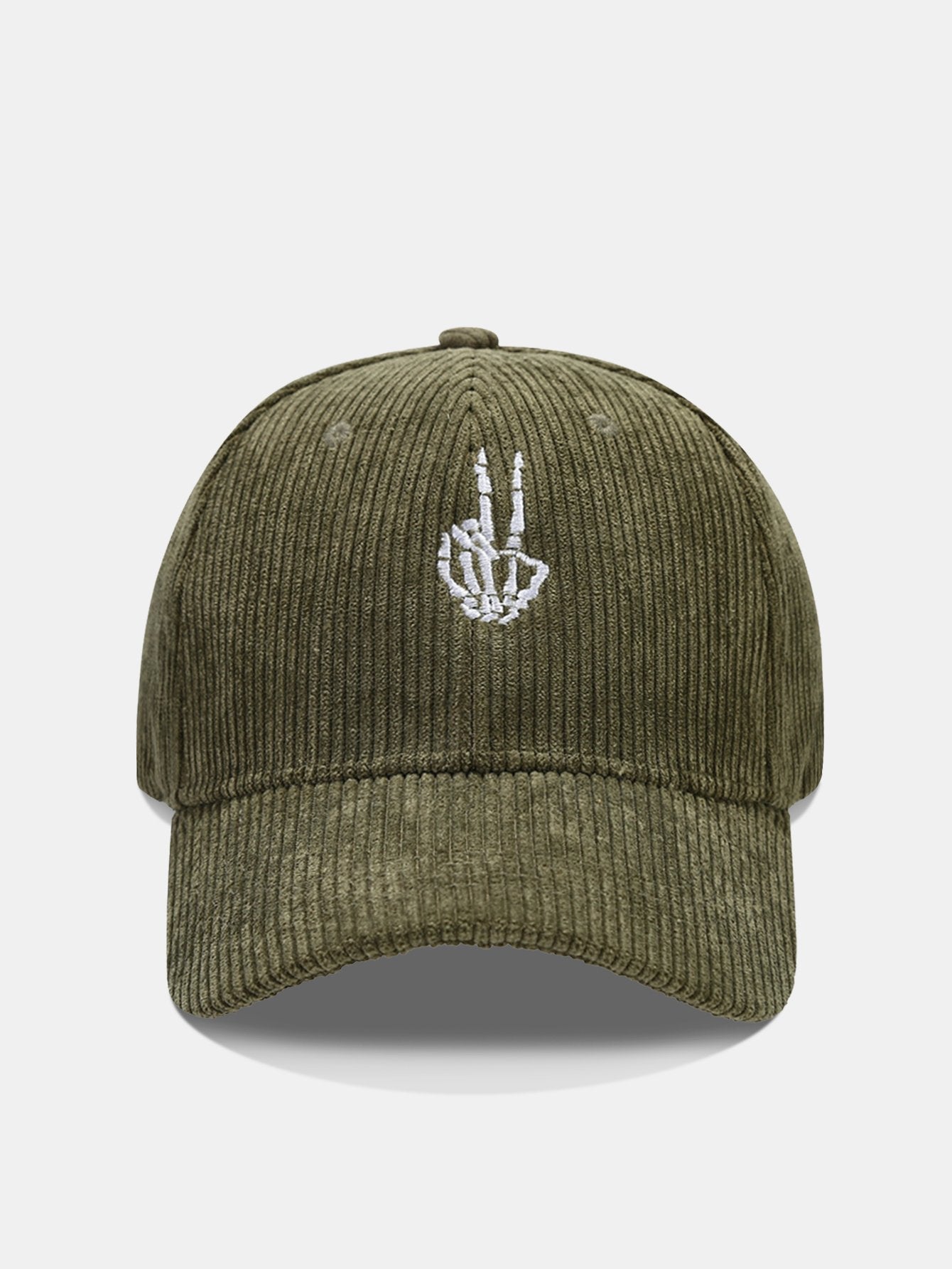 Skeleton Hand Embroidered Corduroy Baseball Cap