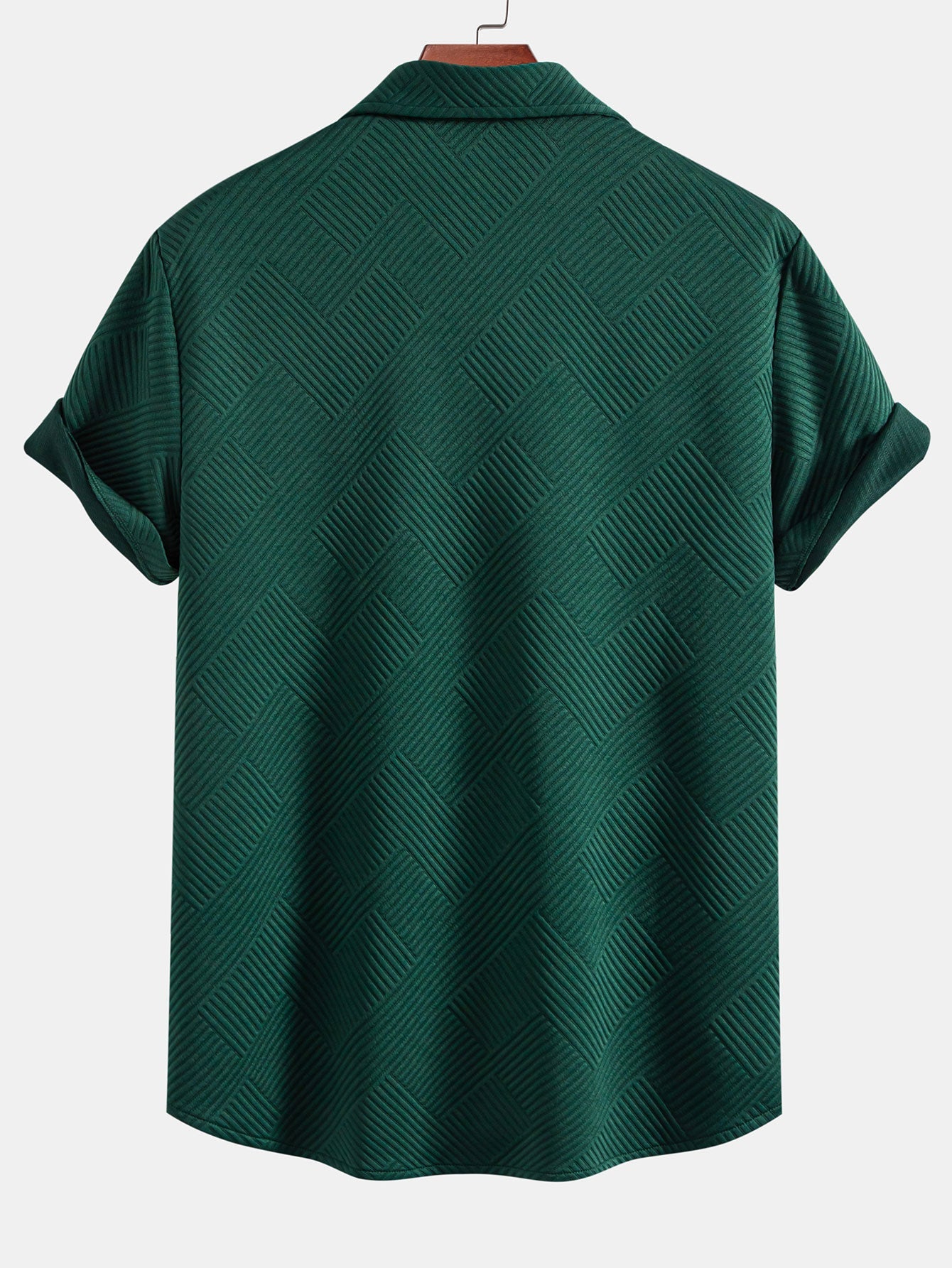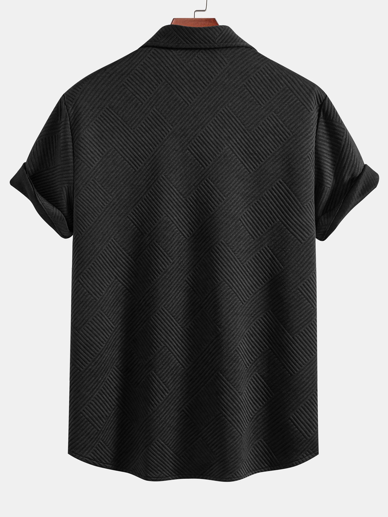 The unique geometric lines on the surface of this short-sleeved shirt add a sense of design and layering. The classic lapel with simple buttons is casual yet refined. The left chest pocket is practical and beautiful. Whether it is daily travel or casual gatherings, it can be easily controlled.