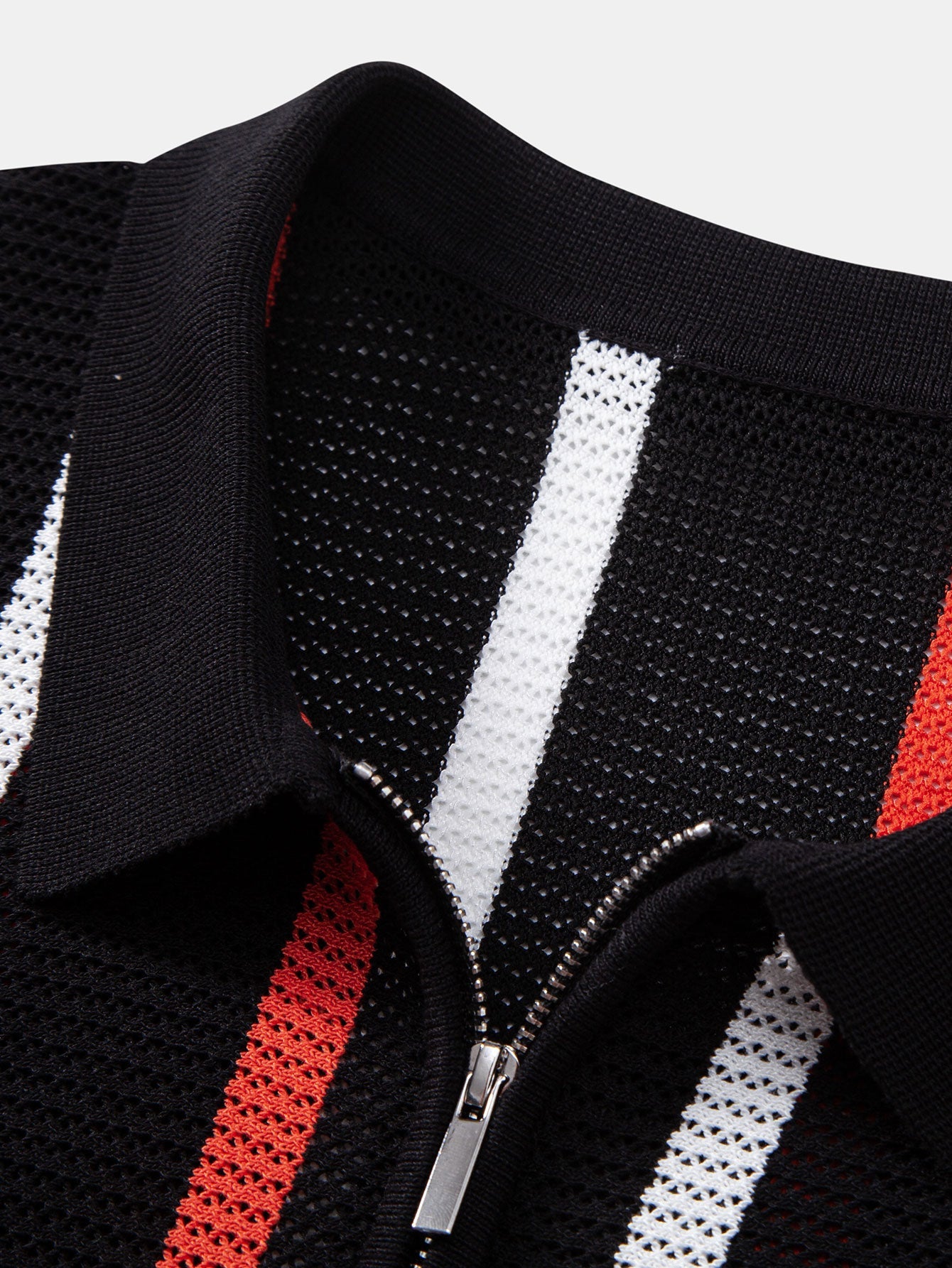 Upgrade your smart-casual wardrobe with this contrast knit zip up polo shirt. Made from a premium, soft-touch knit fabric, it features a sleek zip-up collar for a modern twist on the classic polo. The contrasting color panels add a bold, contemporary edge, making it a standout piece for any occasion.