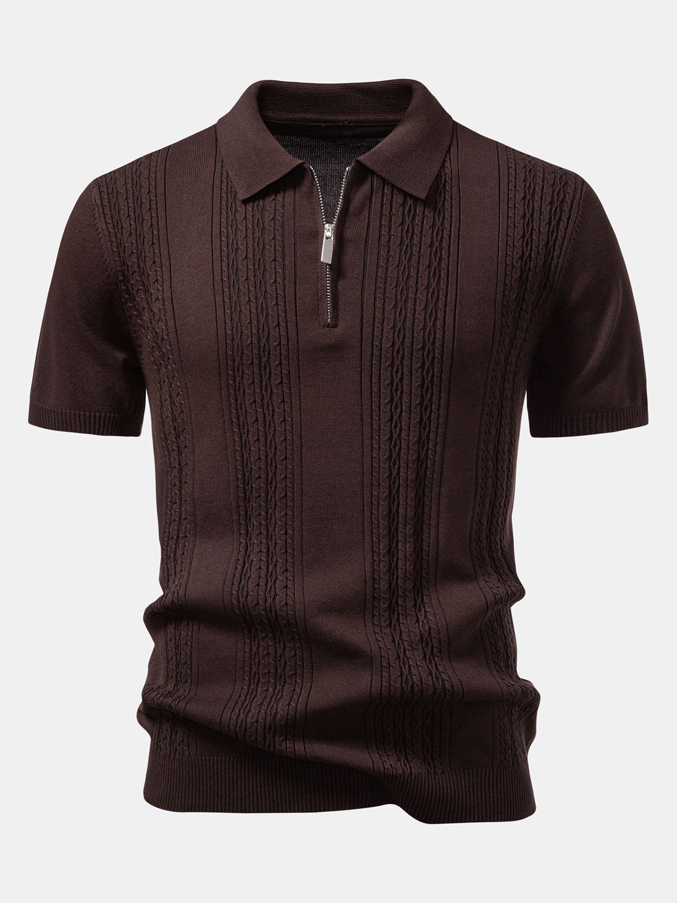 Upgrade your everyday style with our twist jacquard zipper polo shirt, designed for the modern man who values both comfort and sophistication. The standout jacquard texture brings subtle depth and dimension, while the half-zip front adds a bold, urban touch.