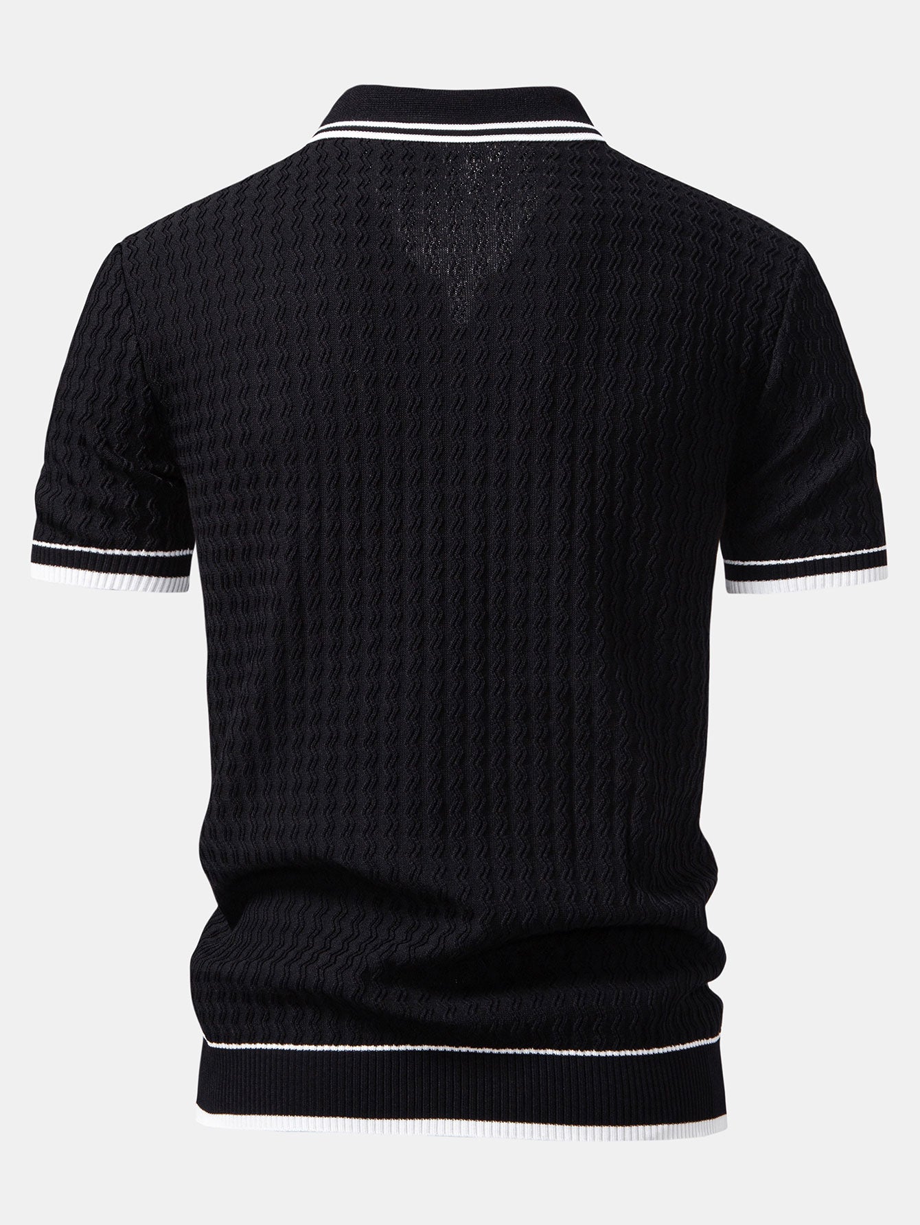 Elevate your everyday wardrobe with the wave jacquard zip up polo shirt — where modern texture meets timeless style. Featuring a dynamic wave-inspired jacquard knit, this polo adds visual depth and sophistication. The zip-up collar offers a fresh twist on the classic polo design, making it a standout piece for casual and smart-casual outfits alike.